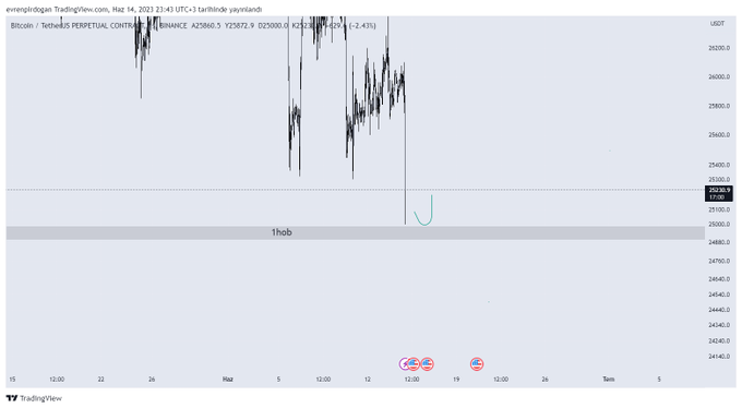 Btc 1h ob henüz tam temas vermedi, bu şekilde düşüşlerde