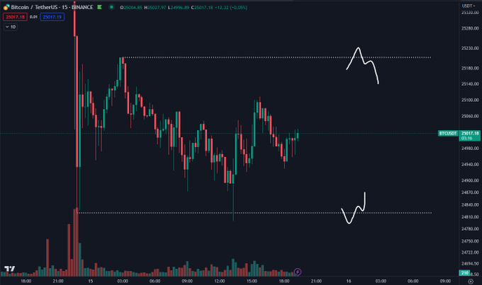 $BTC Low timeframe range for the scalpers. Not much