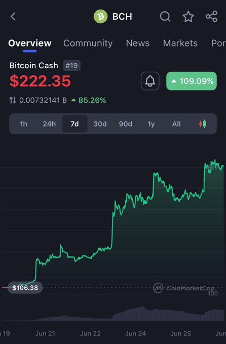 Bitcoin Cash (BCH) is now up 110% in the last 7 days