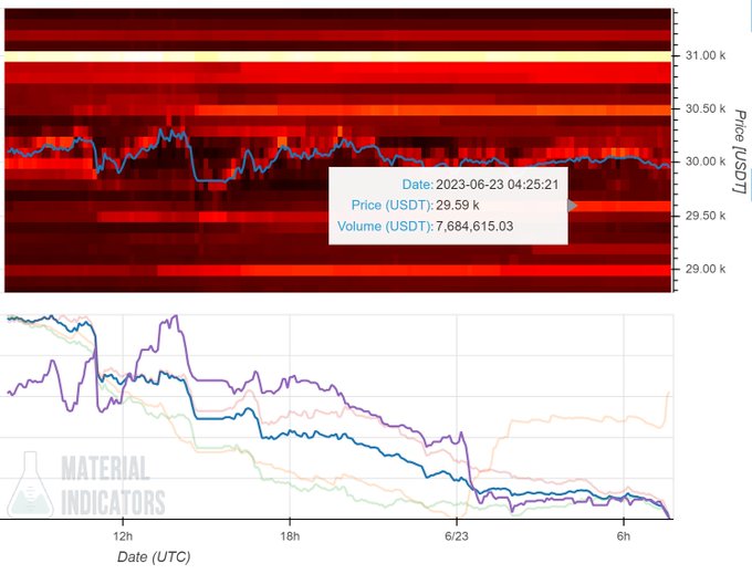 仮に下落しても29.6kでサポートが入るか!? 今日はMMも大人しく全体的に薄商いのようです。 #BTC