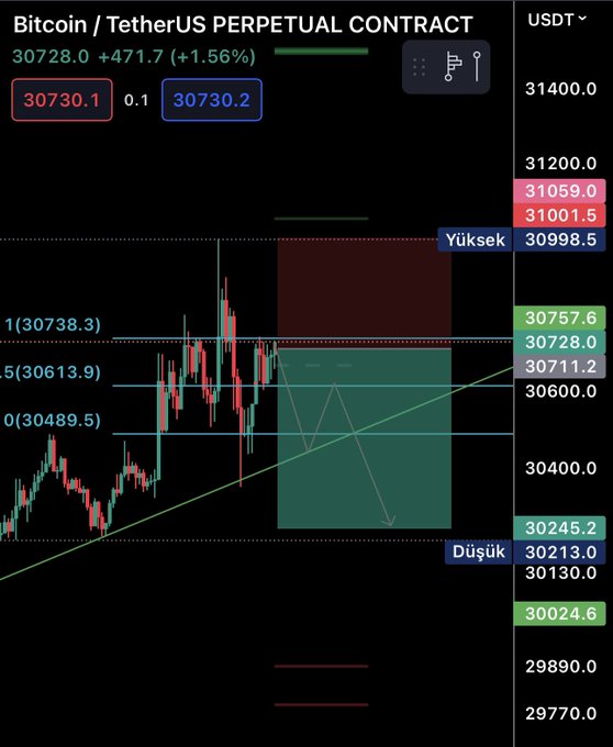 $Btc Bitcoin 15m chart short setup 🎯Target 30245