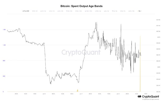 🚨Very old $BTC moved👇 A dormant wallet of 10 years