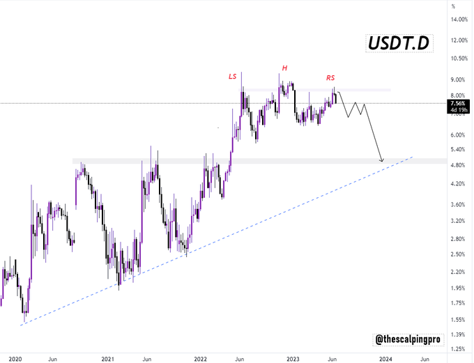 $USDT.D is printing a massive H&S pattern, suggesting