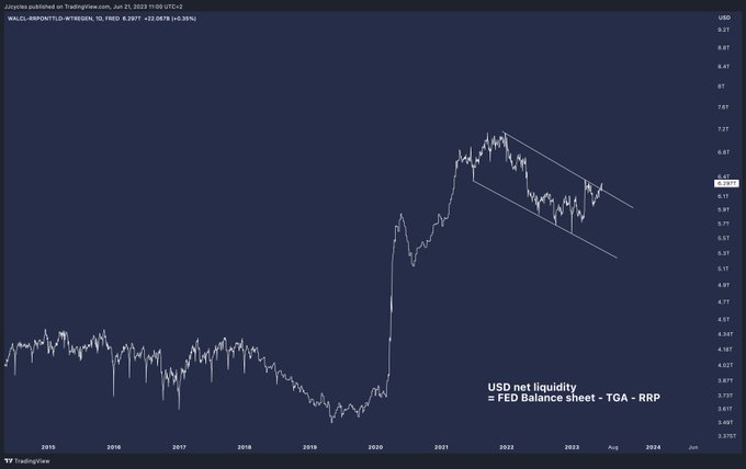 Net USD liquidity is grinding higher, BTC is simply
