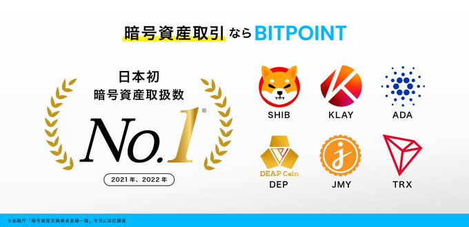 ビットポイントは18種類の #暗号資産 (#仮想通貨)を取扱い中! 時価総額上位や、国内で当社にしかないユニークな銘柄も取引できる! #BTC、#ETH、#XRP、#ADA、#MATIC、#DOT、#LTC、#SHIB、#TRX、#LNK、#BCH、#KLAY、#BAT、#JMY、#IOST、#DEP、#FLR、#GXE 個人の申込方法 https://t