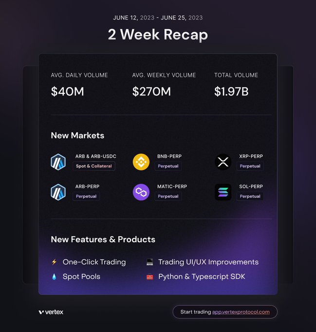 📈 Vertex bi-weekly recap. • First $100m volume day