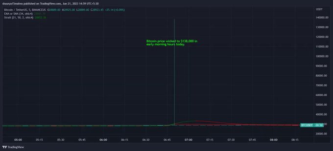 Pe Binance US #Bitcoin a avut un spike pana la 138k