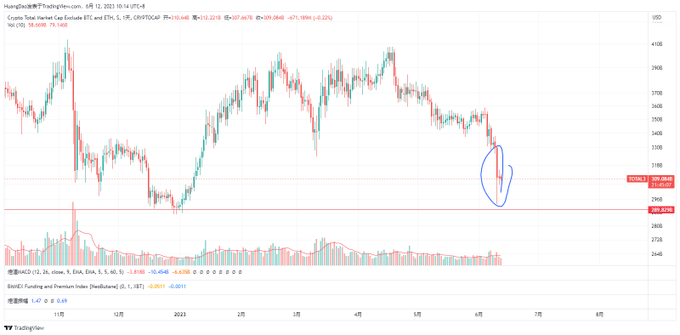 #bitcoin 6.12 轮到BTC和ETH加速下跌了 1.从周线看,前期抗跌的BTC和ETH都有效的跌破了盘整区间,未来一两周有加速下跌的风险 2