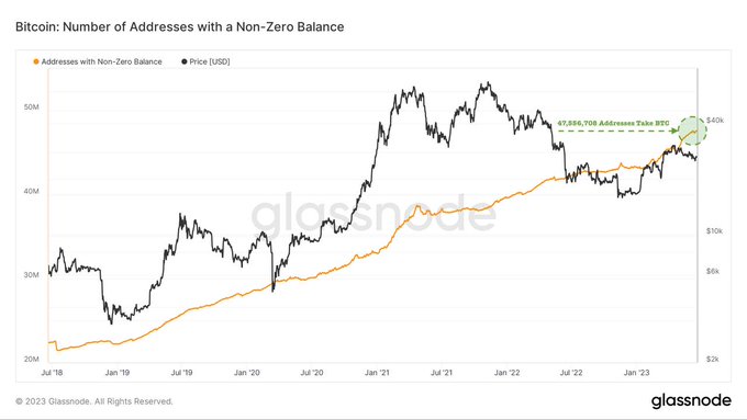 1️⃣ ارتفاع عدد المحافظ التي تملك #BTC الى 47M محفظة