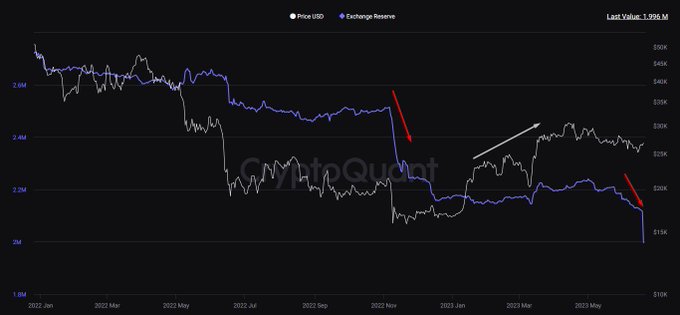 Borsalarda bulunan toplam #Bitcoin miktarı ciddi şekilde