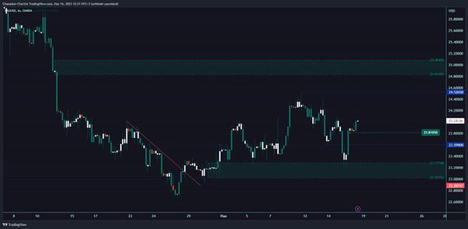 #XAGUSD Gümüş orta vade görünümde 23,277 - 23,023