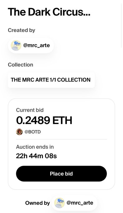 Current highest bid is 0.2489 ETH. A long way to go