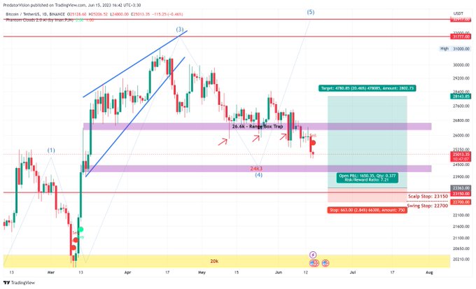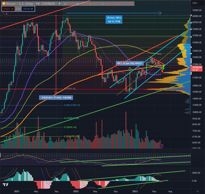 ✅ビットコイン(BTCUSD)環境認識 現在はサポートラインと抵抗帯に挟まれたレンジ相場💹 26