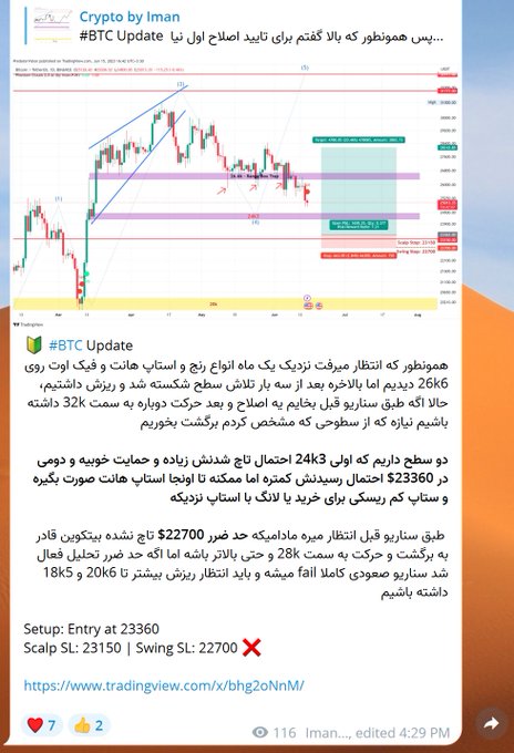 #BTC آپدیت بیتکوین و ستاپ برگشتی مورد انتظارم رو در