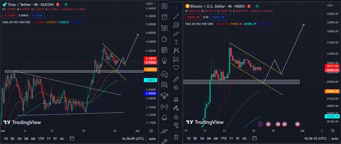 $TRIAS and $BTC 4h timeframe descending parallel