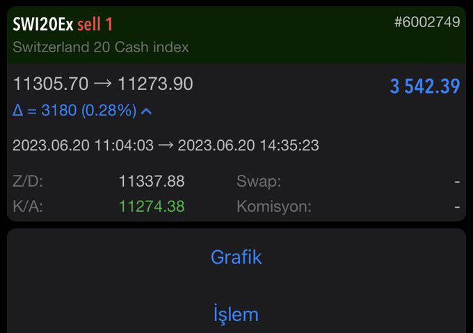 📍 İSVİÇRE 🇨🇭 EKSİK KALMASIN. #SWI20 1 LOT & SELL İŞLEMİMİZ