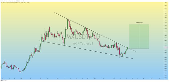 $IMX Breaking out of Falling Wedge on the Daily TF