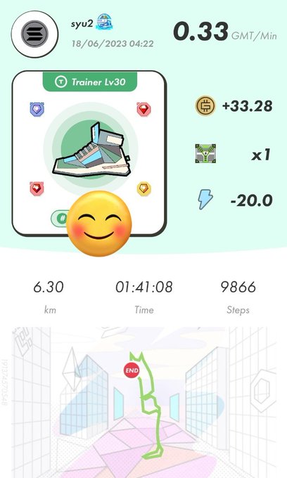 おはステ❗ 朝活終了✨ LV4MB開封 いつもの外れを引いてやりました GMT効率良かったです BGST上昇 SGSTも緩やかに戻してますね それぞれにアーニングが分散されればさらにGMT効率上がるだろうし、GSTも稼ぎがいが出てきますね✨ BTCも戻してきてるし このままゆるりと上がってほしいですね☀️ #STEPN