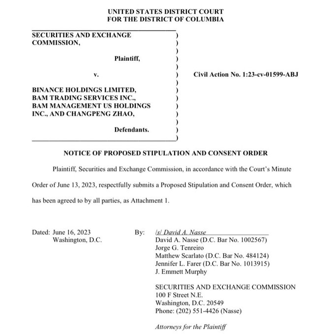 BTC速報:SECとバイナンスの訴訟において「バイナンスUSの社員のみが同社の米顧客資産へアクセスできる」という合意を裁判所に提出。バイナンス及びCZが送金をする懸念からSECは資産凍結に動いていた #ビットコイン