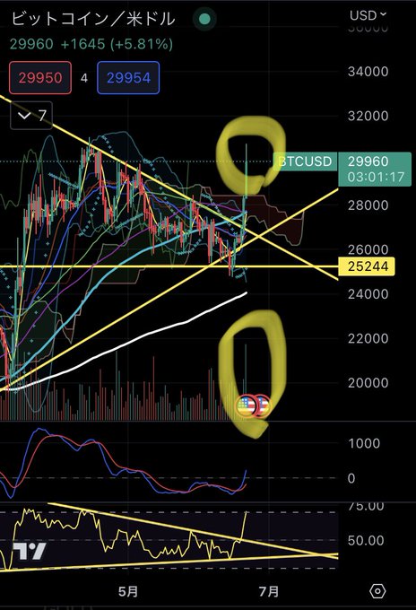 ビットコインは上値抵抗線を 一気に飛び抜けましたね❗️ 出来高も多く買い圧力あり ブラックロックのビットコイン ETF申請の動きの恩恵もありますが、 一連の規制の動きの先には 大口投資家の資金流入があると 見込んでいます✨ #暗号資産