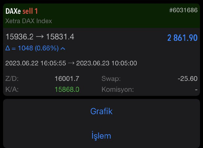GAPLI TP BİZDEN SORULUR 😎 #DAX 1 LOT & SELL İŞLEM