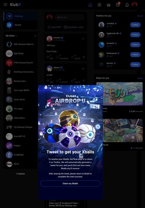Airdrop ! Klubx ikinci sezon ödülleri claim edilebiliyor