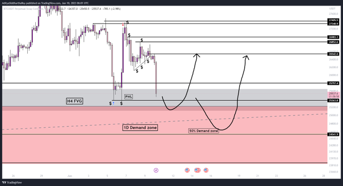 $BTC Possible Long area ~25.3K = PWL = Liquidity area