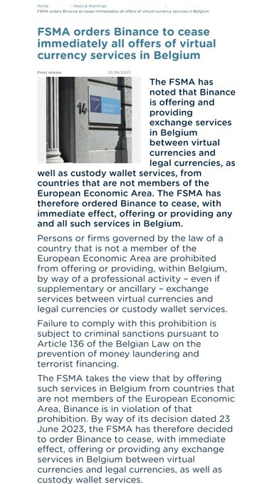🇧🇪 Belgium FSMA orders #Binance to cease immediately