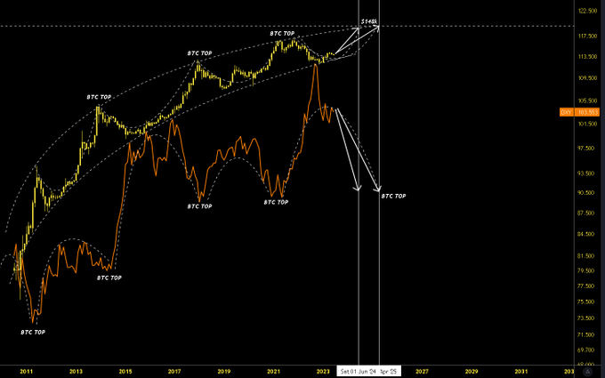The $DXY and $BTC are in a cycle pattern. The next