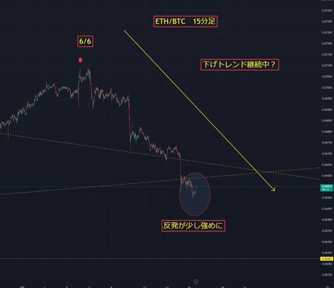 ◇BTCドミナンスとETH/BTCチャート 少しづつですが反発してきました これがトレテンかどうかは今後の動き次第です(´・ω・`) #BTC
