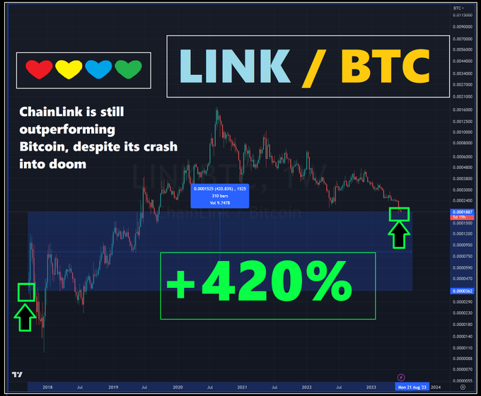 ❤💛💚💙 LINK/BTC. Shows $LINK performance v $BTC. You