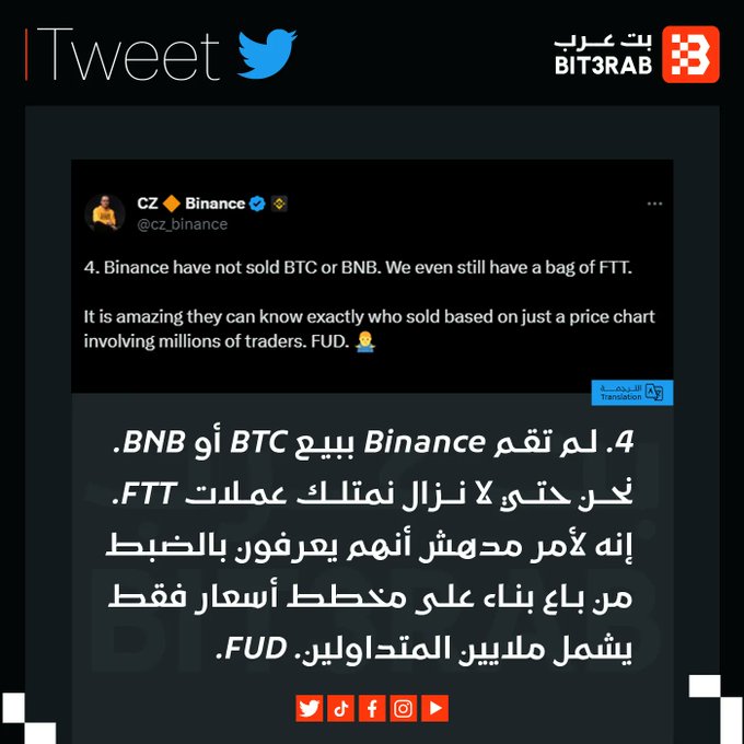 ـ CZ يكذب الإشاعات المتداولة بأن منصة #Binance قامت