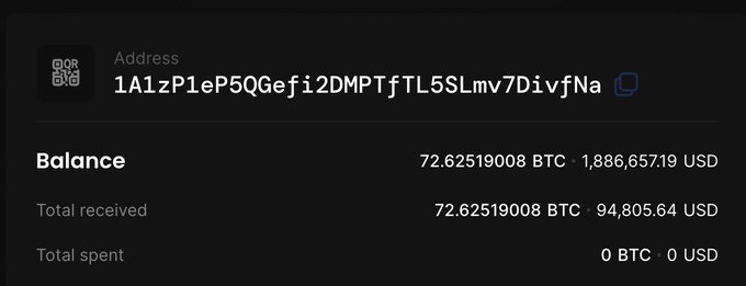 Satoshi's genesis wallet has been sent over 22.62 BTC