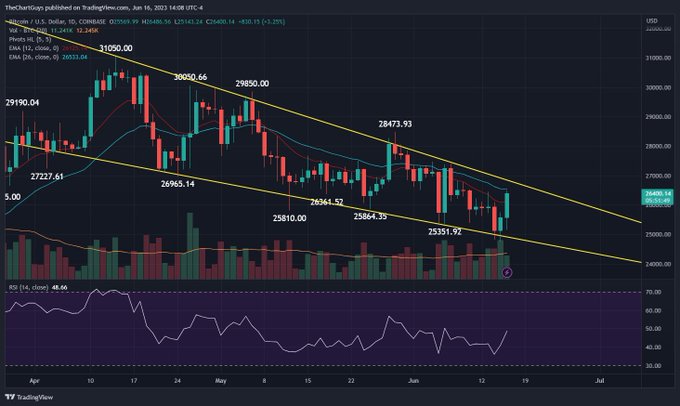 $BTC daily falling wedge watch continues, resistance