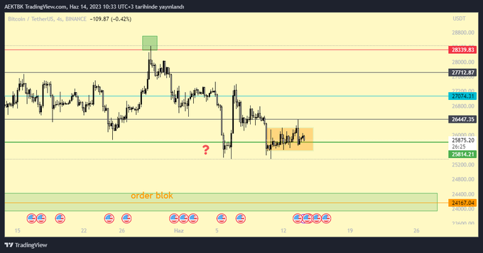 BTC destek direnç seviyeleri kısa vade. Destek 25500 Direnç