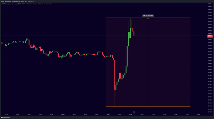 $BTC على فريم اللحظي، الارتداد: اول الايجابية اختراق