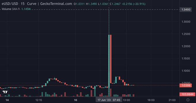 $eUSD のオーバーペグ 1.349ドルの話。 DeFi鯨(0x675124B53AA0125A3231128FfB73F0B094cC648B)が、Curveから9