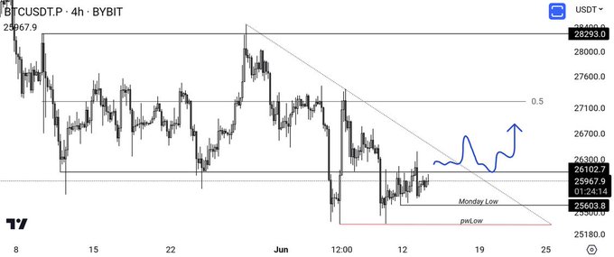アルト死 #BTC 25,300割ったら死 26,200より上の週足確定が鍵です。 https://t