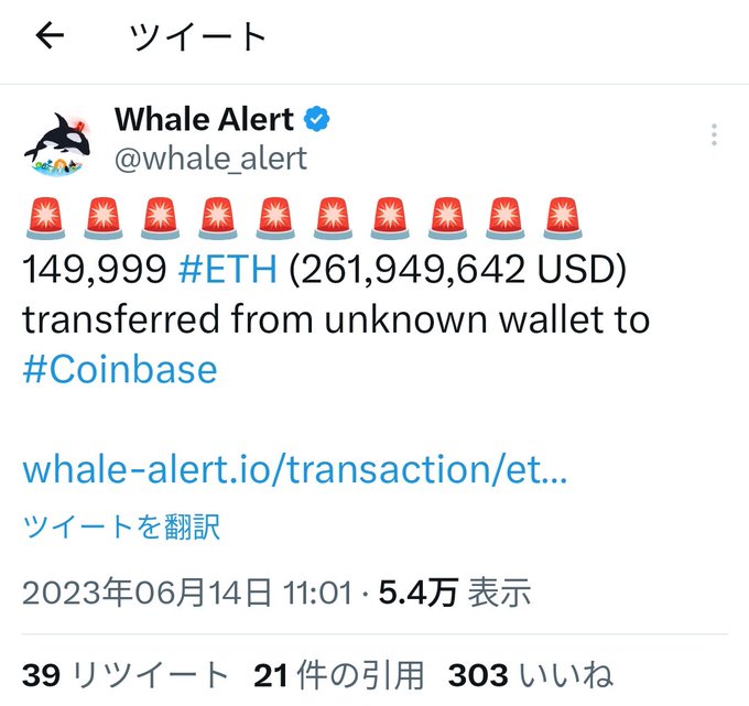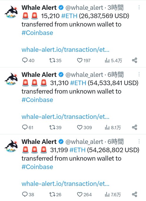 $ETH がコインベースにめちゃくちゃ送金されています☠️ これは明日のAM3時〜FOMCで使う爆弾と考えられます🤔 本日寝ポジされる方はご注意を…