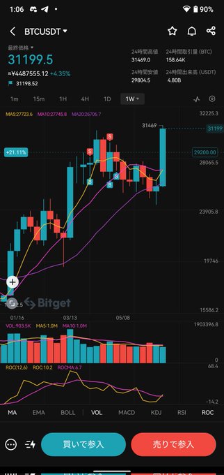#btc 半減期前上昇トレンドを信じてロングガチホ! 利確タイミングはお知らせします✋ https://t