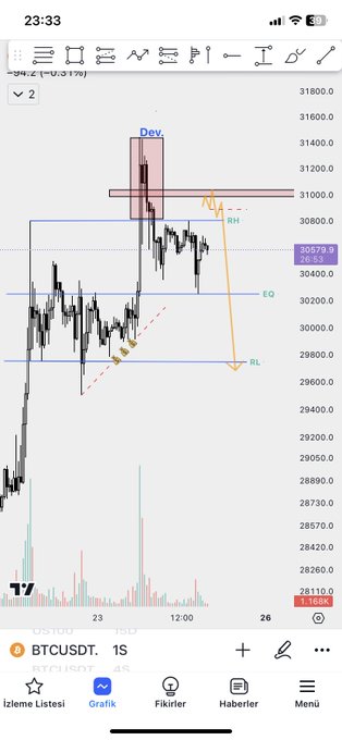 ⚠️ Anlık #Bitcoin Fiyatı 30600 ⚠️ ⚠️ Long Likidasyonları Long