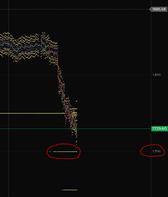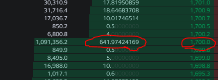 ◇ETH板読み 狭い範囲で通常の上下に価格と連動する板と見分けづらいのですが、1700ドルに641枚の板が出現したので、こちらの板は高確率でタッチします 1650の板は以前からなので、今のところ不明になります #Eth