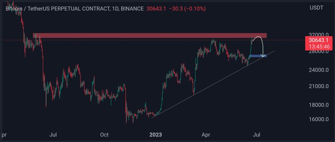 #BTC Direnç/Destek Güncellemesi! Sonraki destek: 30000