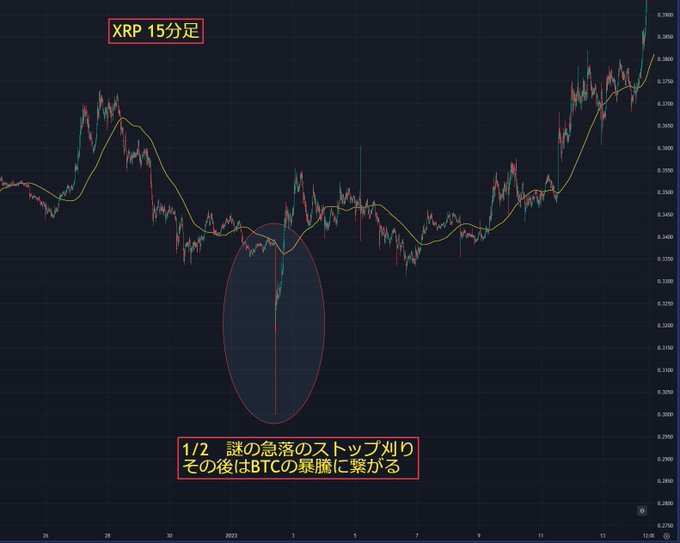 ◇XRP短期チャート XRPチャートとXRP/BTCチャートは昔見ていましたが、さっぱり分からん(´・ω・`)という結論で終わりました 今は高値と安値のラインと大き目なヒゲがないか見る程度になってます 昨日のCPIは大き目なヒゲでストップ刈りがありました…