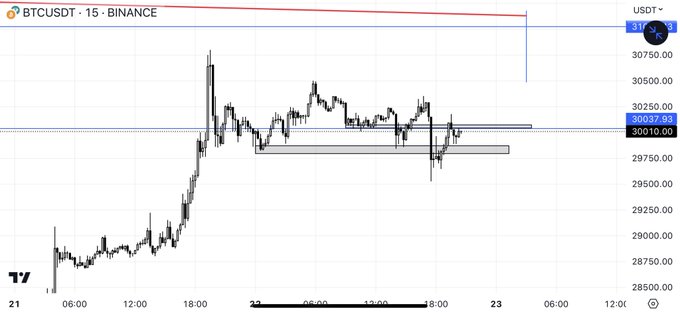 #btc この場合どれだけ昨日の足の安値から上の距離で引けることができたかが強い上昇予兆になるとおもいます