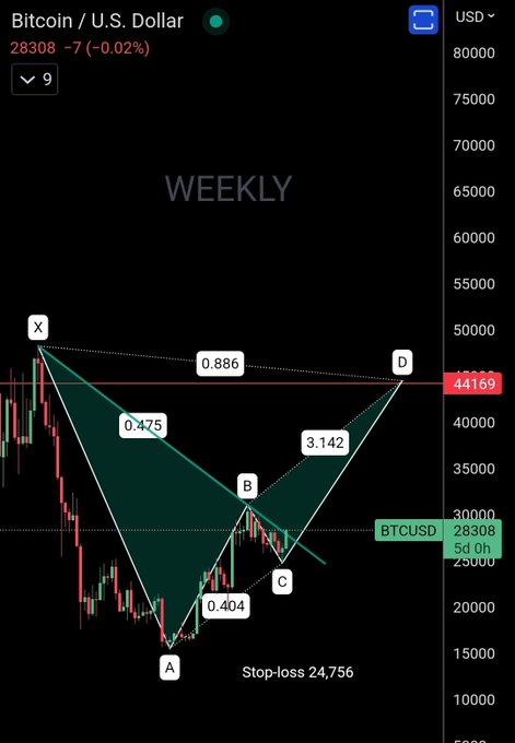 Potential bat harmonic pattern developing on Bitcoin