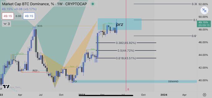 La dominancia de #BTC acaba de alcanzar el 50% por