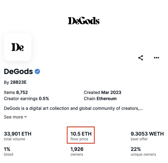 DeGods floor is now well above the MAYC floor (2 ETH)