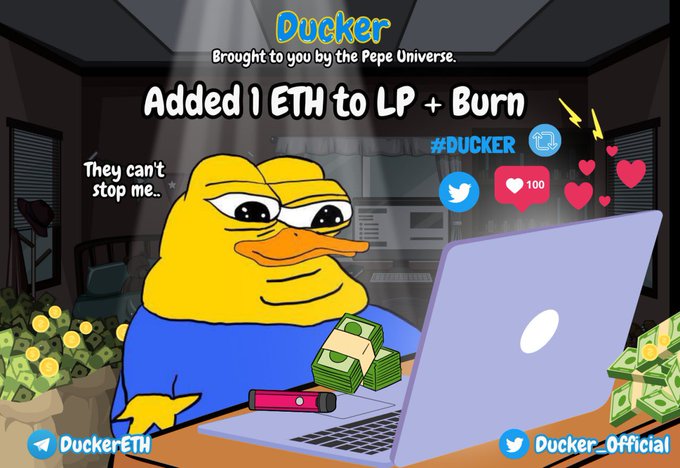 🔥 $DUCKER Announcement: 1 ETH Added to LP & Burned