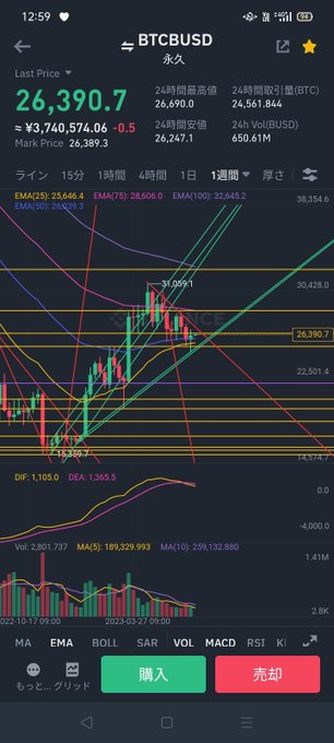 週末のBTC反落 週末に戻したBTC 静かにYHを達成 BTC一強ですね 今週も頑張りましょうー🕺 #日本株 #仮想通貨 #YH #TradeNote